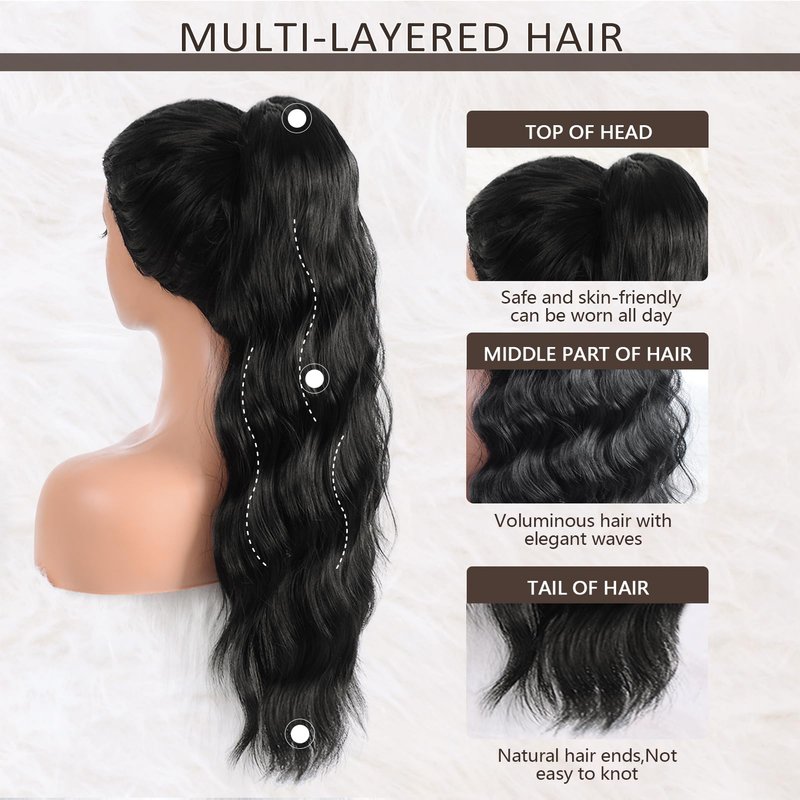 The long ponytail extension comes with a clip and adjustable drawstring, it only takes a minute to finish wearing it by yourself, not easy to fall off and save styling time.