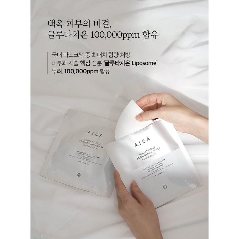 Glutathione 120,000ppm contained mask. AIDA Glutathione Brightening Toning Effect Gel Mask helps your skin brighter and cleaner