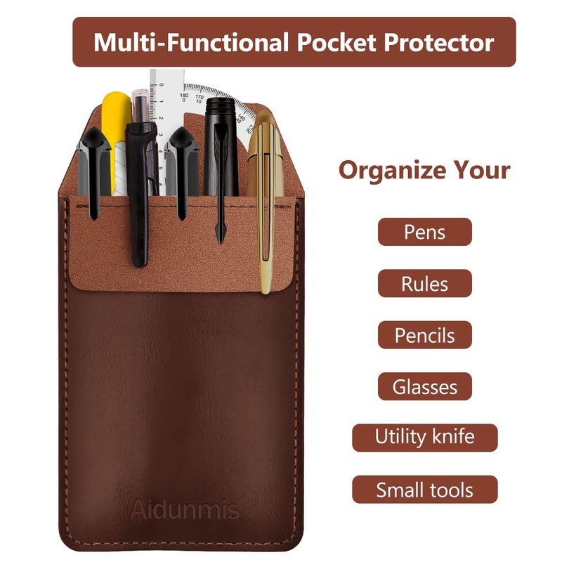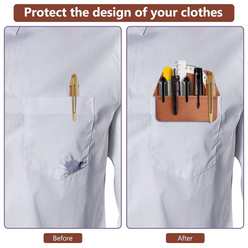 - Great Material: Pocket protectors for pens and pencils is the handmade pen protector holder pouches. Leather pocket protector is made of high quality PU leather, this pocket protector for lab coats is so soft and has a silky texture to the touch but is still extremely durable and can last a lifetime. PU leather will not spoil your clothing design or color and a great choose to protect your pen.