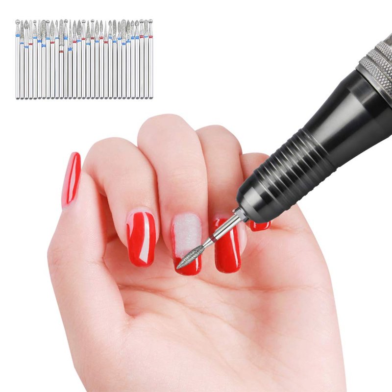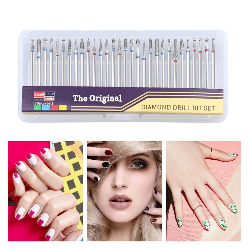 Aieil Professional Diamond Nail Drill Bit | 30 PCS Diamond Drill Set - Set of 30 pcs | 3/32" Shank, Perfect for doing surface work, shortening and backfill cutting
