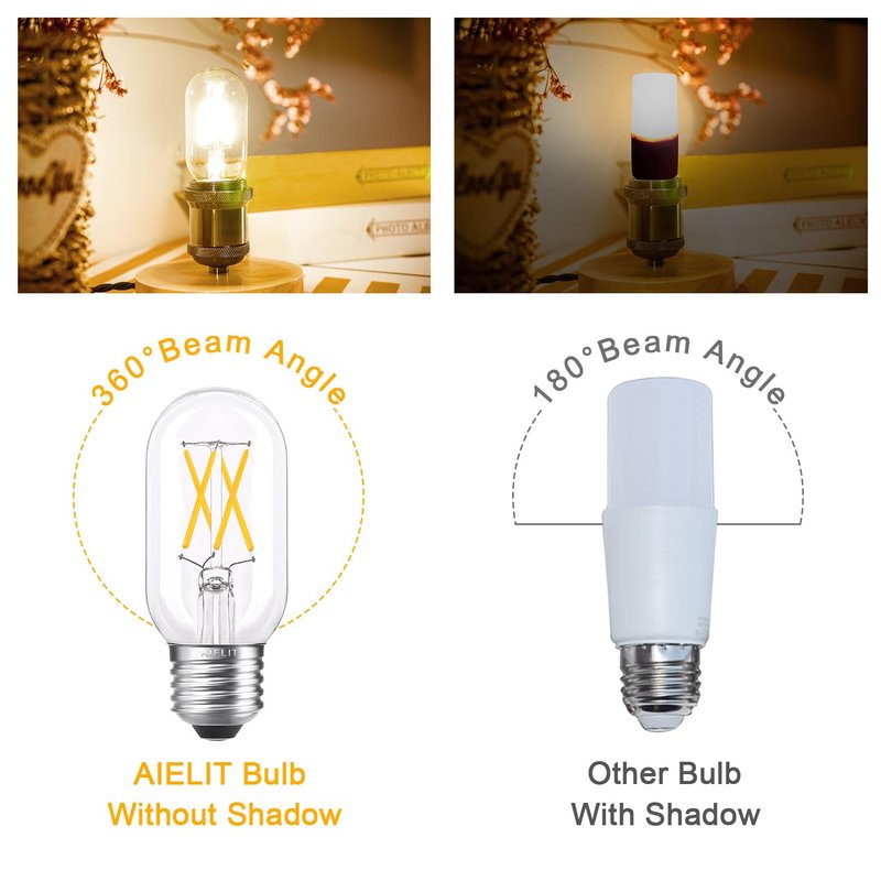 AIELIT 4-Pack 4-Watt T45 dimmable LED filament bulbs, our worry-free 24-month warranty and friendly customer service. Note: Any quality issues or need guidance, pls email us. We will process and reply within 12 hours.