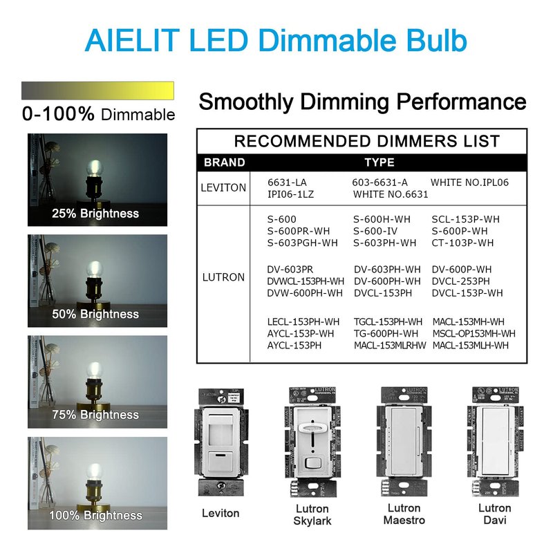 Actually, AIELIT's dimmable light bulbs are suitable for 98% of dimmers on the market.