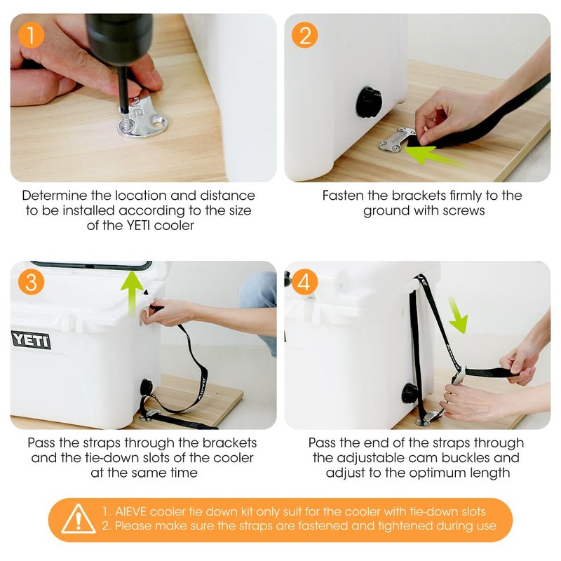 - Easy to Install: Secure the deck plates to floor with screws, nylon cooler straps pass through the deck plates and cooler tie-down slot, adjust straps length with quick release cam buckle. The cooler mounting kit is perfect for secure YETI Coolers RTIC Coolers and prevent from slipping.