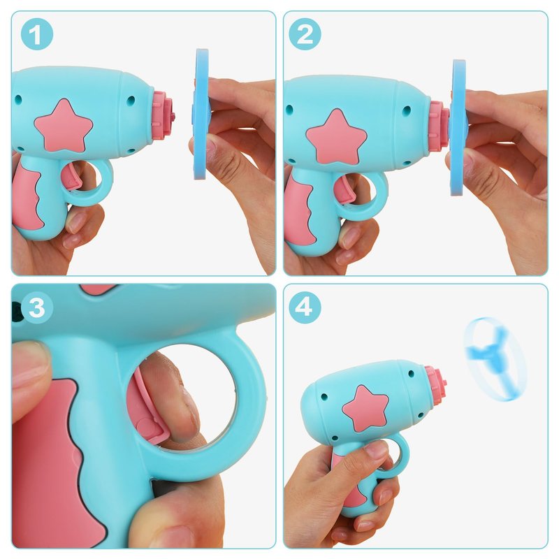 - Package Content: You will receive a helicopter cat toy launcher with 4 regular flying discs, 2 flash flying discs and 2 luminous spinning tops. Perfect toy for motivating your cat to scratch and chase toys. Cats can receive happiness during playing.