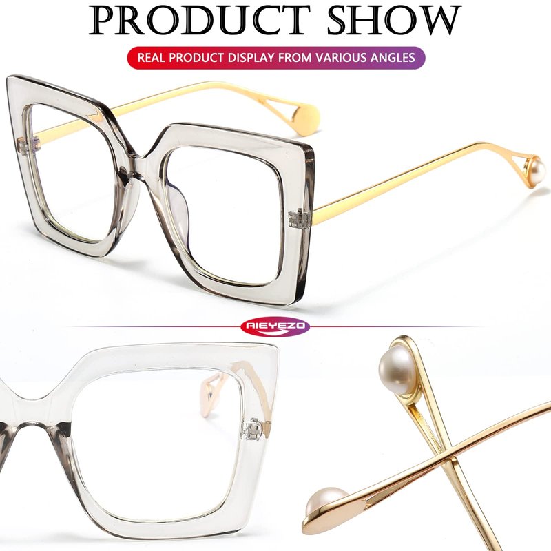 - FASHION BRAND DESIGN ►Oversized big frame, stylish metal arm with pearl, personalize your style from a variety of frame colors including flower, blue and leopard. Created exciting and unique looks, give these glasses ultimate comfort alongside pristine fashion that will make your style ageless, frame design is perfect for your face.