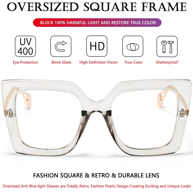 - SQUARE OVERSIZED FRAME ►Our anti eye strain glasses use high quality composite, it made of the best TAC thermoplastic, this highly advanced nylon-based material is flexibility, memory retention, shock resistant and water proof, is the best choice for eyewear enthusiasts.