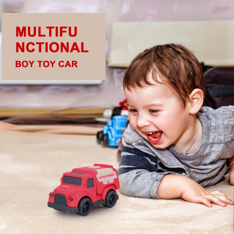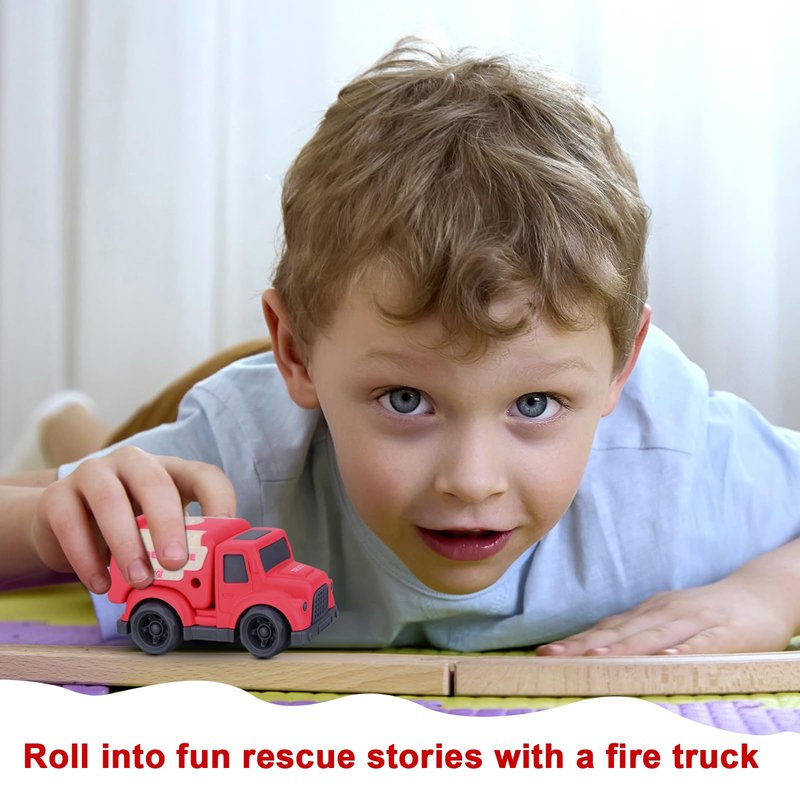 - 【Great Size for Little Hands】Designed for toddlers' hands, easy for little kids to push and grip, great size , not too big or small. Small size and easy to carry. The trucks are quite powerful, they can go a long distance with just a slight push and can also be used on carpet. Exercise your child's fine finger skills. Without small accessories, you can let your child play with peace of mind even when you’re not around.