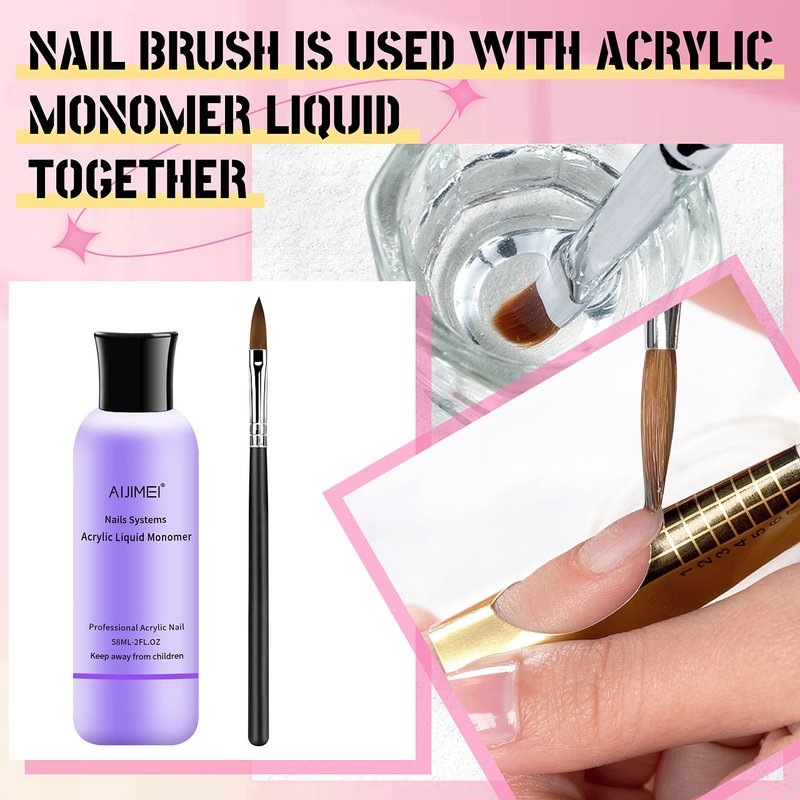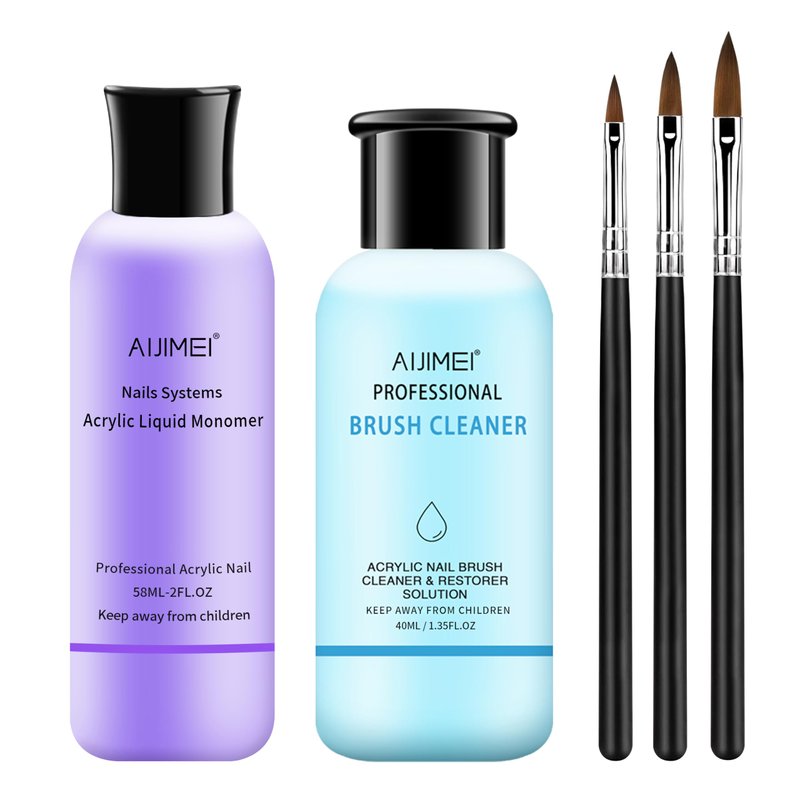 - ✿AIJIMEI monomer liquid set, the set contains 58ml/2fl.oz acrylic liquid, 40ml/1.4fl.oz brush cleaner, 3pcs acrylic nail brush. The acrylic nail liquid kit is great for beginners and professionals to use in the nail salon or DIY at home.