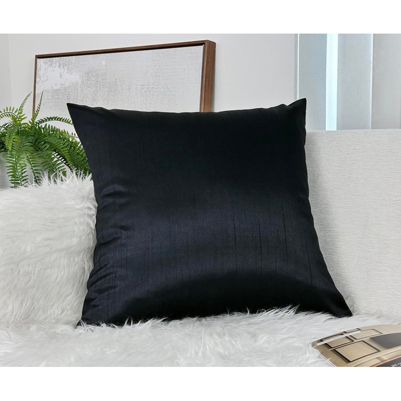 Aiking Home Collection Solid Faux Silk Euro Sham/Pillow Cover, Zipper Closure, 26 by 26 Inches, Black