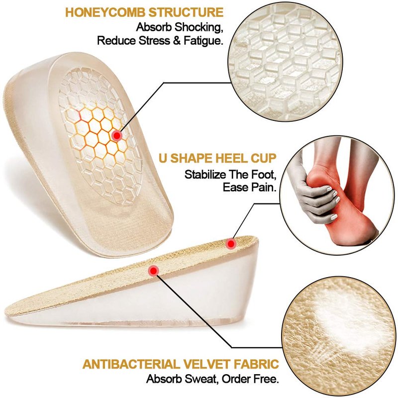 - ✅ HIGH-QUALITY MATERIAL: Made of soft and durable medical-grade gel, the inserts with honeycomb design are crafted to fully absorb shock and reduce stress on heels with every step. More soft yet stable, provide enough support to your feet.