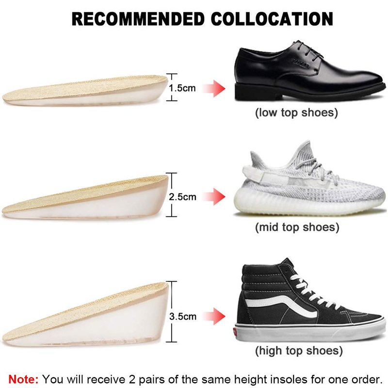 - ✅ CUSTOMER ARE OUR PRIORITY: We offer 100% no risk money back guarantee if you’re not thrilled with your purchase for any reason. You will receive two pairs of the same height insoles for one order. Our shoe lift insoles are suitable for most shoes, such as boots, sports shoes, sneakers, high-top shoes, tennis shoes. Not suitable for low-top shoes.