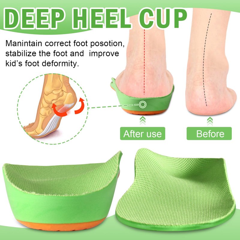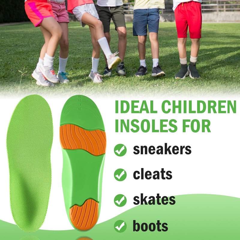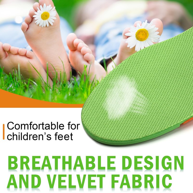 - ORTHOTICS ARCH SUPPORT: Firm foot arch support of 3.5 cm height provides effective full arch support for preventing and alleviating pain associated with common foot conditions. Ideal orthopedic insoles for kids with flat feet, over pronation, high arch, low arch, common foot pain, arch pain, heel pain & plantar fasciitis.