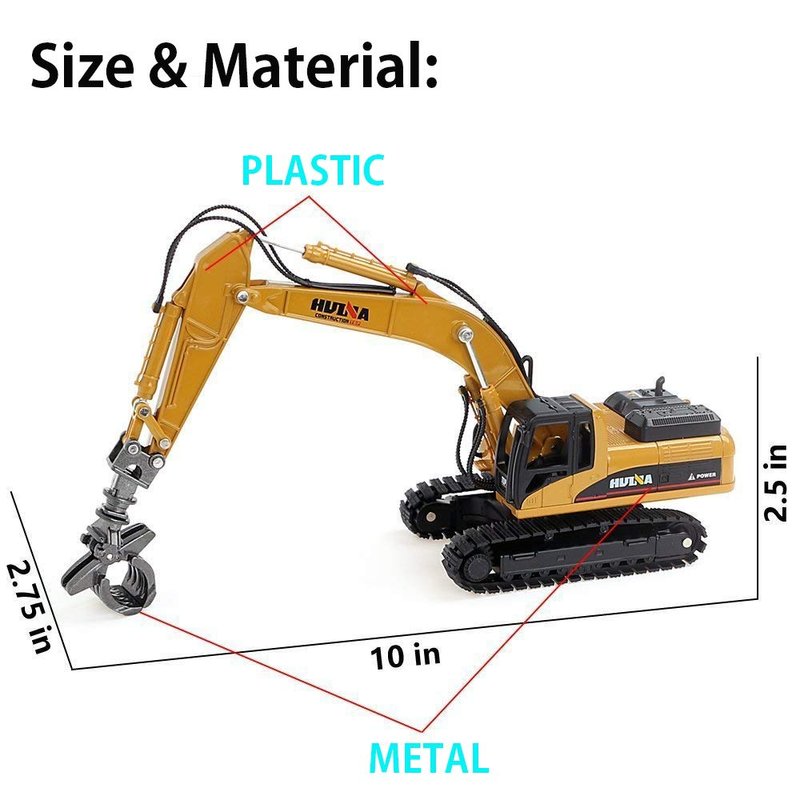 - SIZE AND MATERIAL -- Size of Box : approx 7.87"(L) * 2.36"(W) * 2.36"(H); It looks very big, It's more like a real Construction machinery;Material: Made of highest quality Zinc alloy, Able to withstand violent beatings from children.
