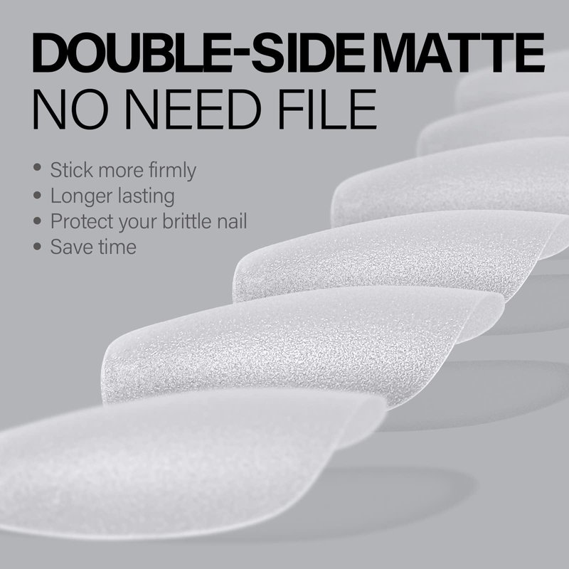 - FULL MATTE TEXTURE - Why choose AILLSA nail tips? Choosing upgraded double sides full frosted texture, the gel nail tips feature stronger adhesion, better fitting your natural nails. Using this acrylic nail tips, you can enjoy the privilege of “ NO NEED FILE, NO NEED BASE COAT ”. No worry that your nails will become thinner and uglier due to polishing, providing better care for your nails. Without base coat, you also can get the manicure effect you want, saving time and money.