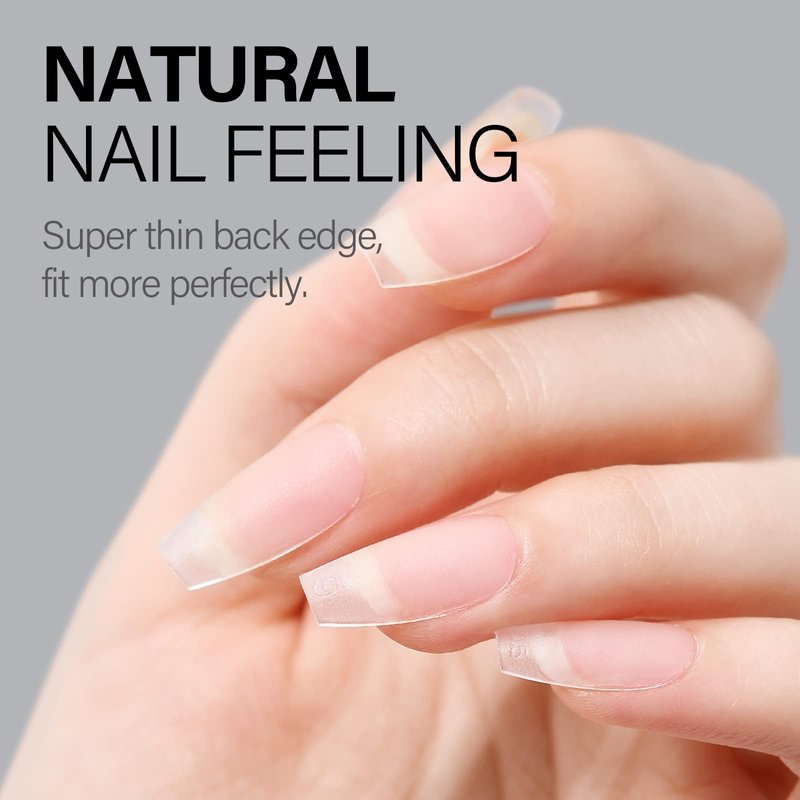 - NATURAL FIT EFFECT - Our soft gel tips feature “ Thin back edge, thick front edge”. The thinner back edge can make the full nail tips fit your nails better, which will not make you feel uncomfortable. Also, the clear nail tips are more breathable, which will not cause burden and pressure on your fingers; The thickened front edge makes it not easy to break or bend, having longer lifespan. Just like your natural nails, do whatever you want!