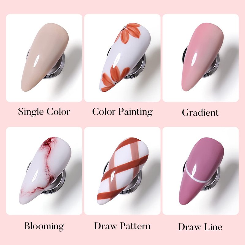 - QUICK AND EASY APPLICATION: Simply brush on, with highly pigmented and vibrant colours, one layer can show stunning effects. Can be used as normal color gel polish, painting gel, embossing gel.