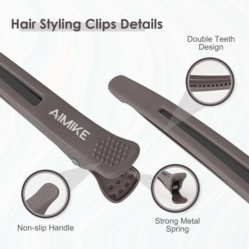 - 💖【Upgraded Premium Material】AIMIKE hair styling clips boast premium quality construction. The top part is made of durable ABS plastic with a matte finish. While the smooth metal bottom is electroplated for more attractive and rust resistance. Thanks to the highly elastic metal spring, these duck billed hair clips easily hold large amounts of hair securely in place.