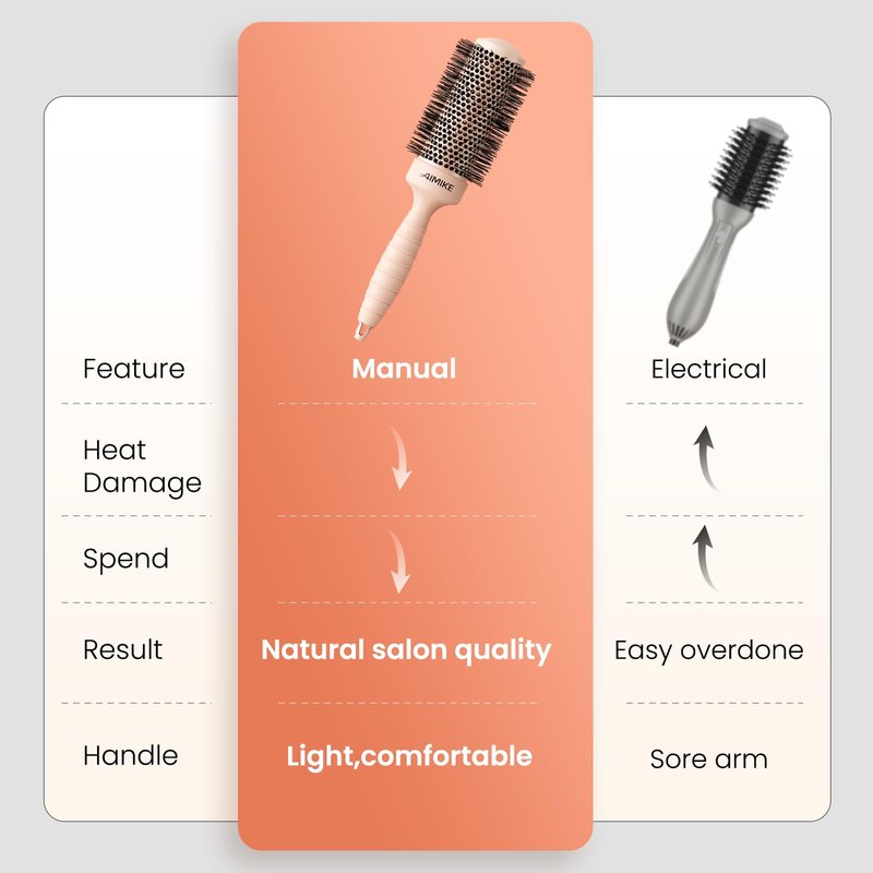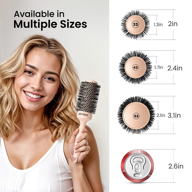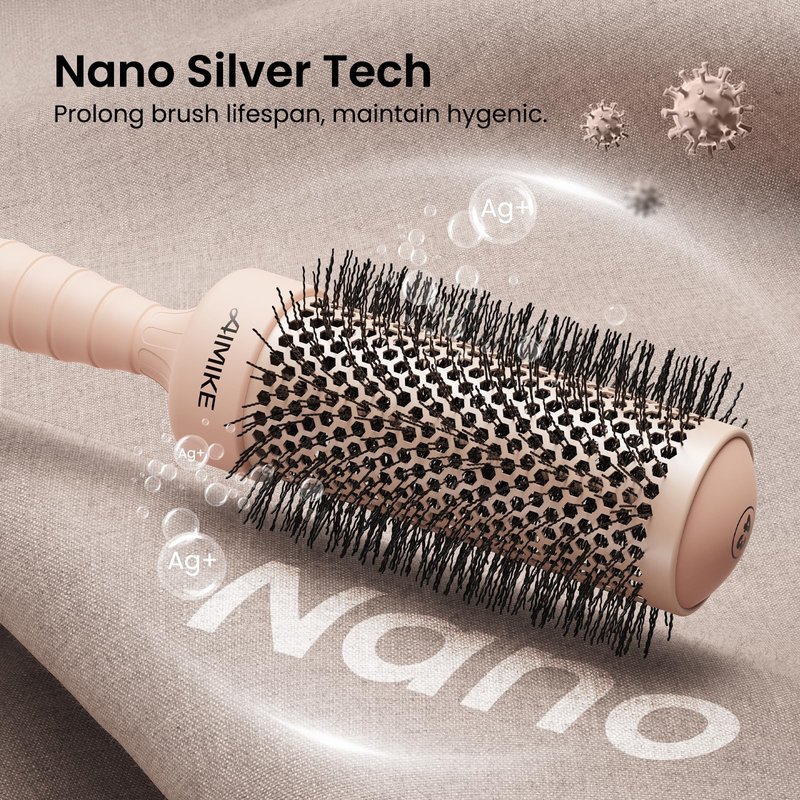 - Nano Silver Ion Infused Tech Round Hair Brush: AIMIKE nano round brush will emits negative ions while blow drying, which helps seal cuticles and reduce unwanted flyaways and frizz for a sleek shiny hair. And its nano silver tech decides its hygienic feature and longer lifespan