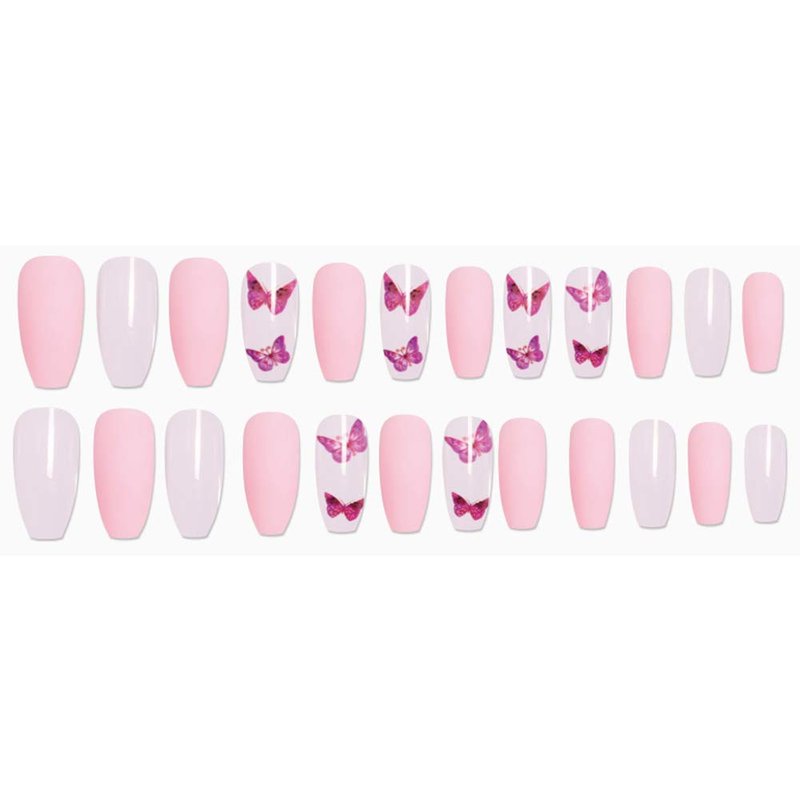 Aimimier 24Pcs Ballerina False Nails with Design Pink Butterfly Coffin Nails with Gluetabs Gradient Fingernails for Women and Girls (Style 3)