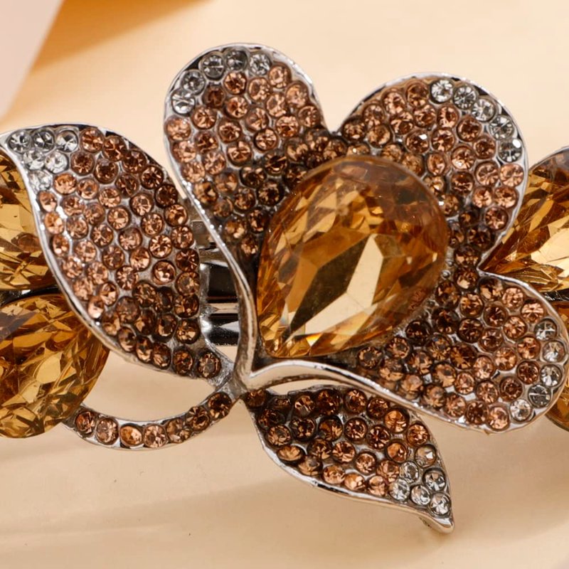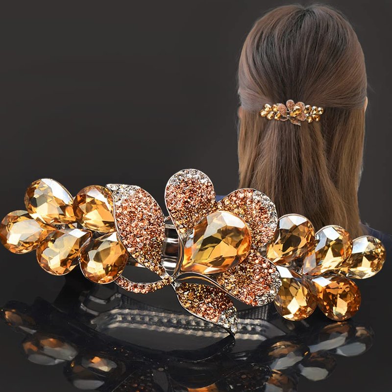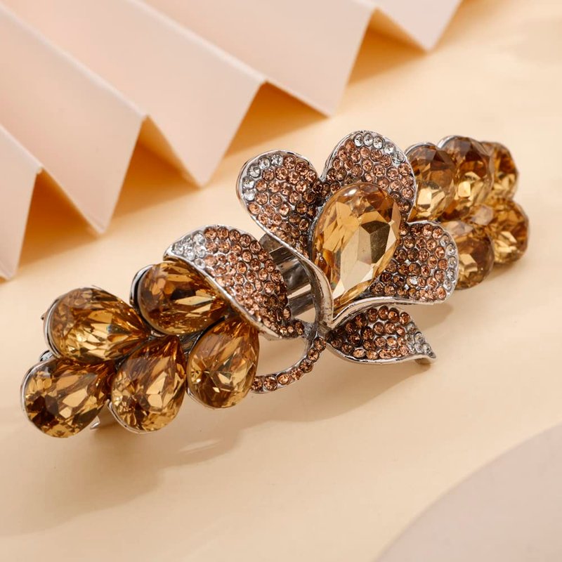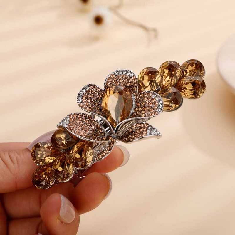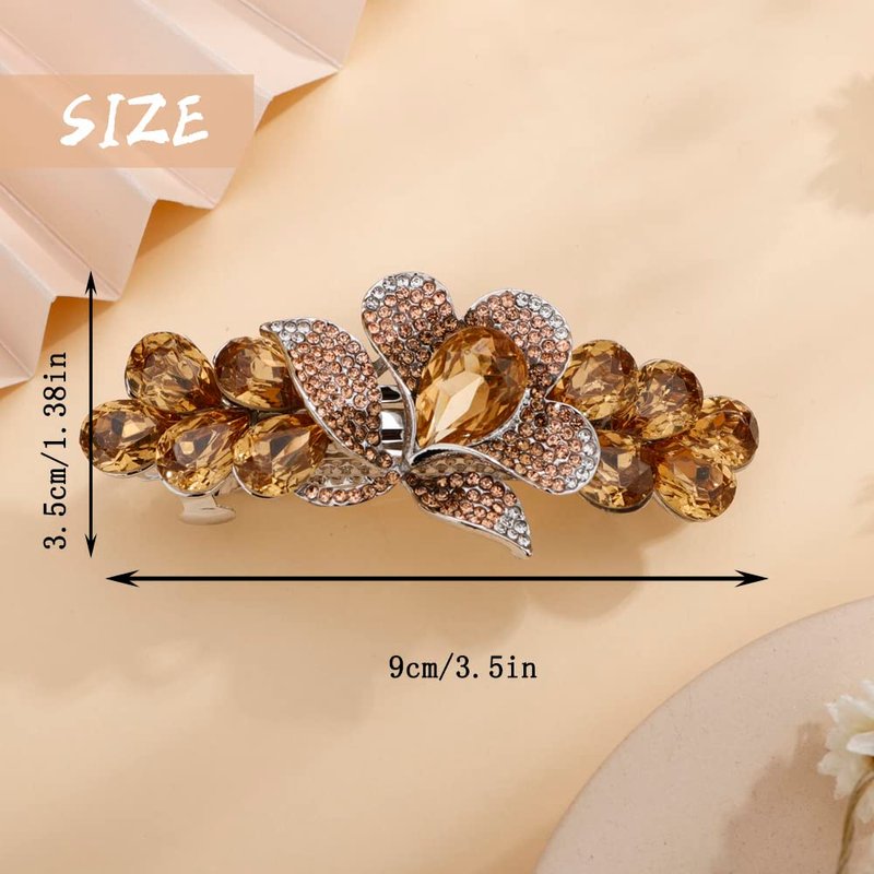 Aimimier Bridal Crystal Flower Hair Clip for Thick Thin Hair Bun Barrettes Classical Wedding Hair Accessories for Women (Yellow)