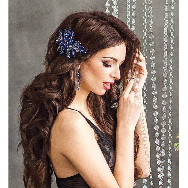 Aimimier Bridal Royal Blue Crystal Hair Comb Sapphire Hair Piece Prom Party Festival Wedding Hair Accessories for Women and Girls