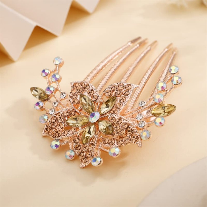 Aimimier Flower Crystal French Hair Comb Luxury Rhinestone Gem Side Combs Long Teeth Hair Pins Bridal Hair Accessories for Women Girls(Champagne)