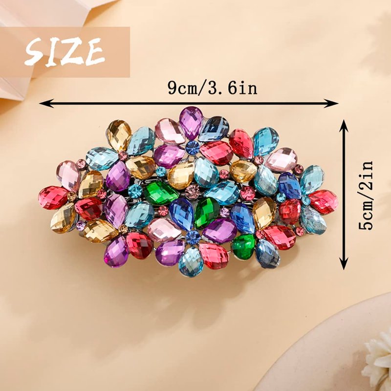 - Size-5 * 9cm / 2 * 3.6in. Color-- Colorful (The crystal color is randomly matched, please prevail in actual clips)