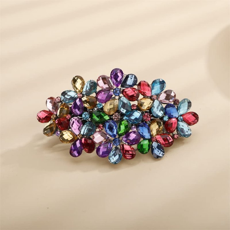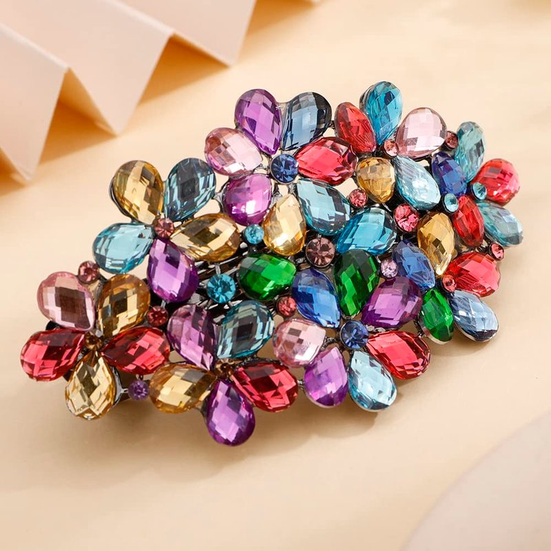 Aimimier Flower Crystal Hair Barrettes Sparkling Rhinestone Hair Spring Clamp Gem Hair Pins Fashion Prom Party Hair Accessories for Women (Colorful)