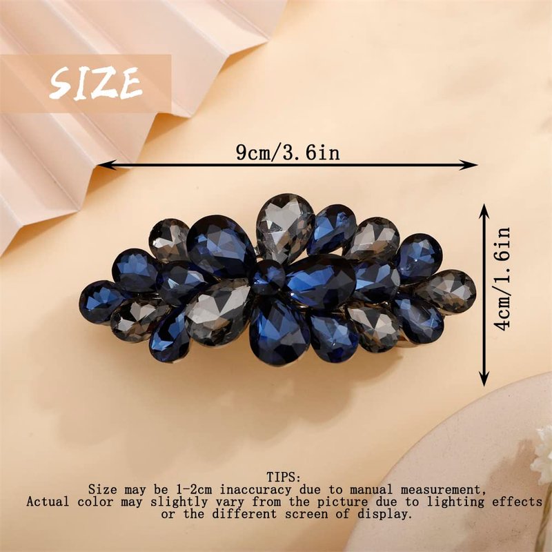 Aimimier Flower Crystal Hair Clip Fashion Rhinestone Barrettes Alligator Snap Hair Clips Ponytail Holder Bridal Hair Accessories for Women Girls (Blue)