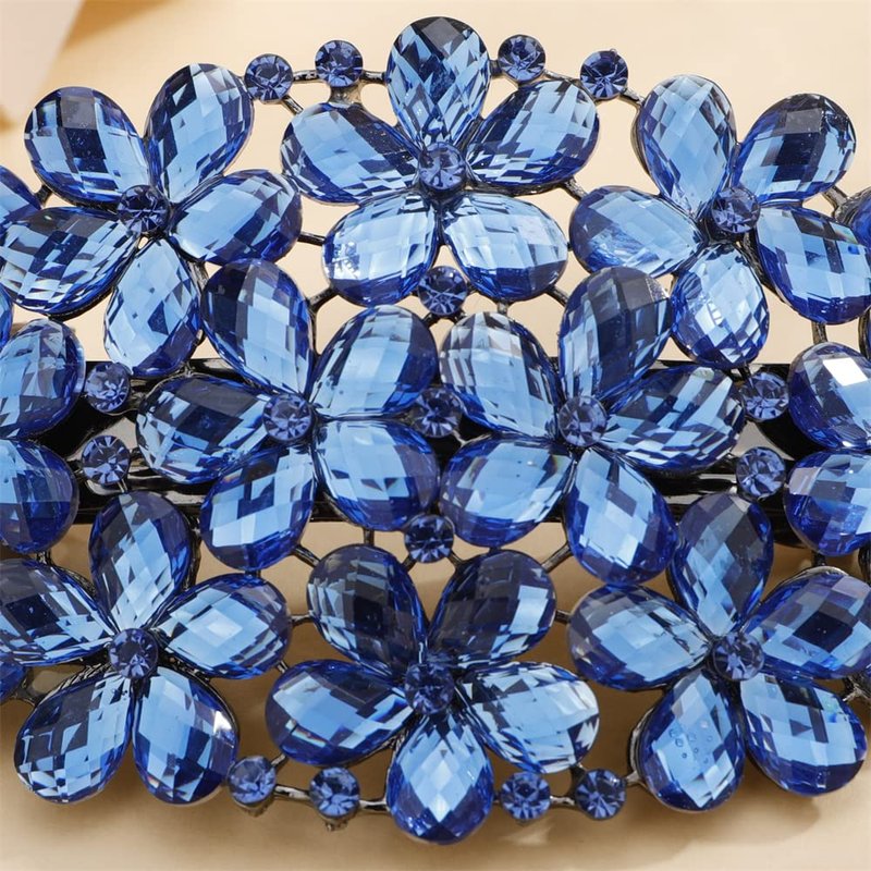 Aimimier Flower Crystal Hair Clips Shiny Rhinestone Hair Spring Clamp Gem Hair Pins Bridal Hairpiece Wedding Hair Accessories for Women (Blue)