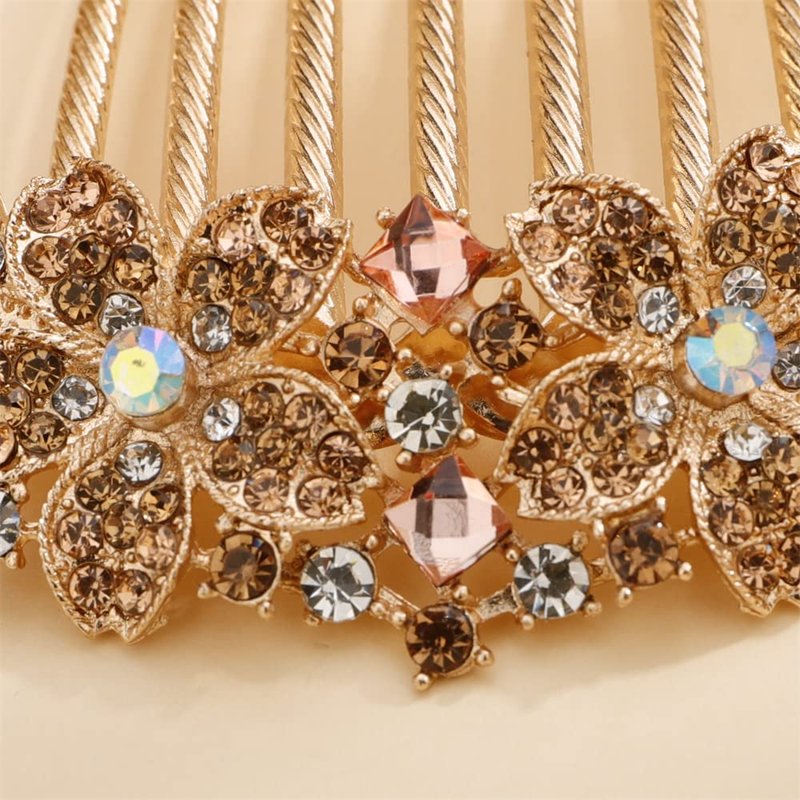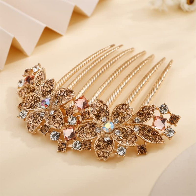Aimimier Flower Crystal Hair Comb Decorative Rhinestone Gem Side Combs Long Teeth Hair Pins Updo Hair Accessories for Bride and Bridesmaid(Champagne)