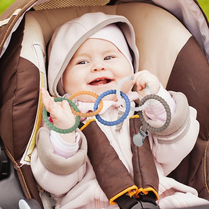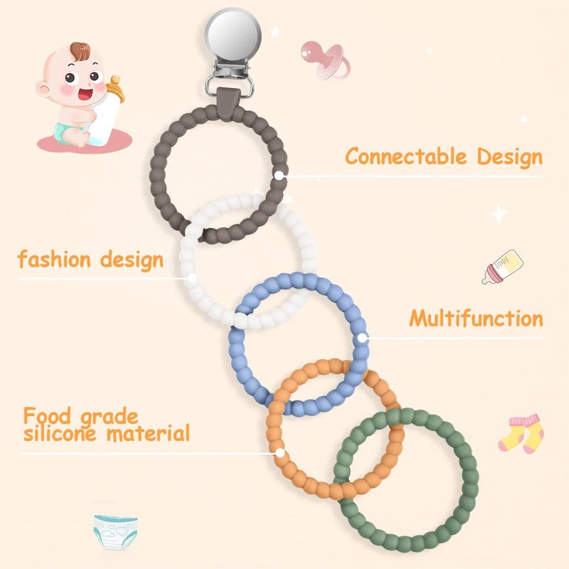 Ainiv Silicone Baby Teether Links, Cutie Baby Teething Toys with Pacifier Clip, Multi Use Baby Teether Rings, Food Grade Silicone Attachable Teether Chew for Newborn Infant Baby Gift, Color-7