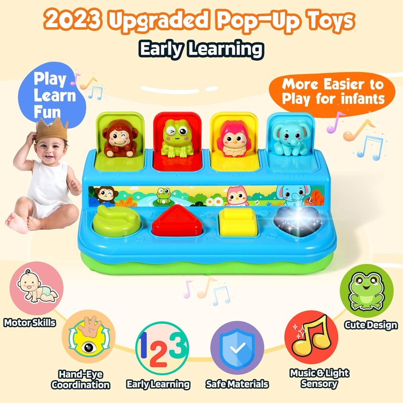 AINOI Preschool Early Development Cause and Effect Pop Up Toys, Light Musical Baby Infant Toys 6 to 18 Months, Kids Toddler Learning Toys for 1-3 Years Old Boys Girls Gifts