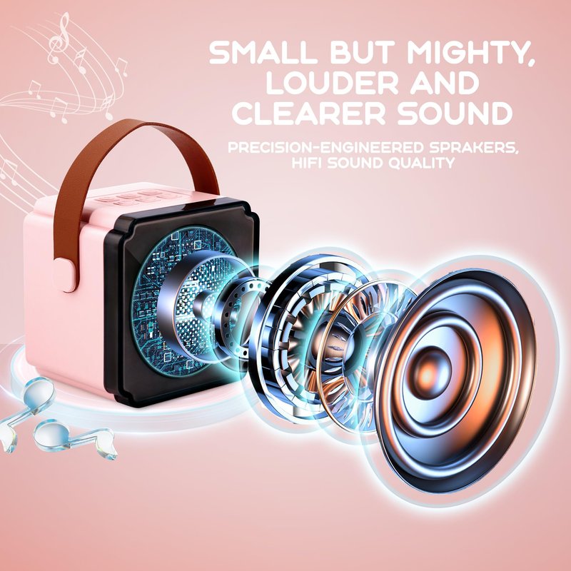 - Powerful Acoustics-- Mini Karaoke Machine has special design and high quality audio components. The built-in prompt sound makes it easy for adults and children to operate. Karaoke machine with Bluetooth features advanced digital signal processing that can resist annoying electrical sounds and microphone echos. The upgraded microphone can adjust the output volume, reverberation and sound, which is suitable for use as a karaoke machine and a regular microphone.