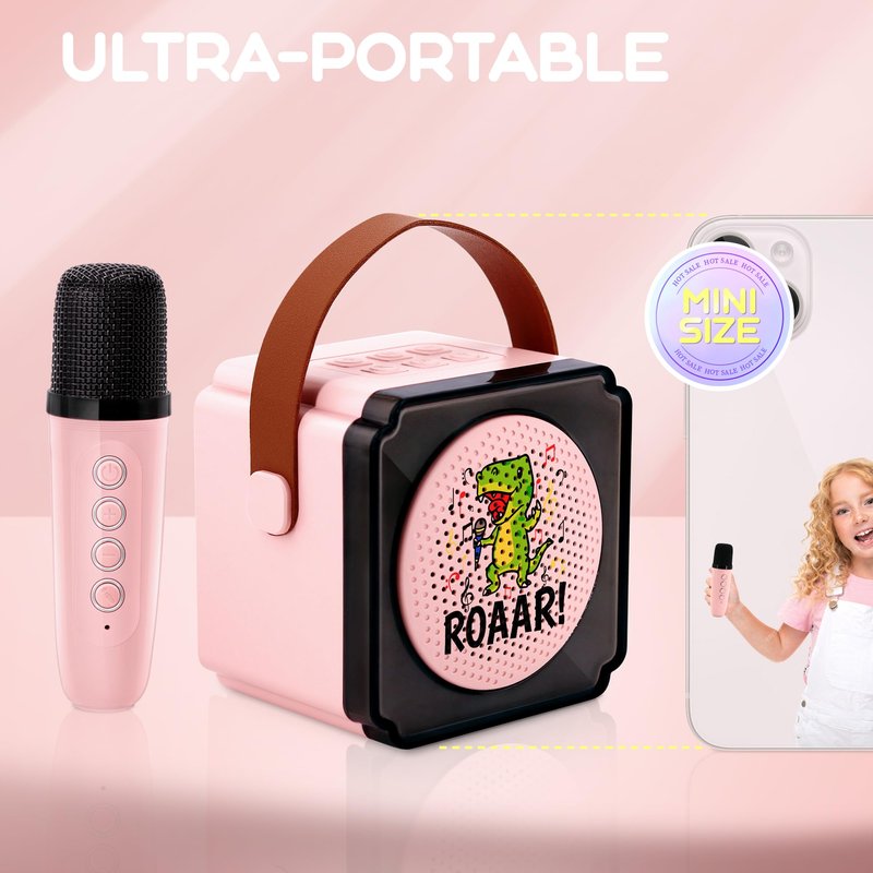 - As a Prezzie-- : Kids karaoke machine for girls, the colorful design and beautiful packaging box make it a perfect toy for girls and also a Christmas and birthday creative Prezzie for boys and girls aged 3, 4, 5, 6, 7, 8, 9, 10, 11, 12. Take the stage everywhere with this ultra-portable karaoke machine, as well as a great Prezzie for young and old.