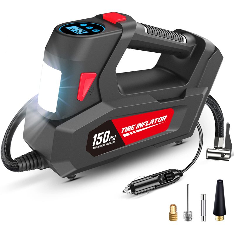 Air Compressor Tire Inflator Portable Air Pump DC 12V Auto Tire Pump with Digital Pressure Gauge,150PSI with Emergency LED Light for Car Tires, Motorcycle, Bicycle and Other Inflatables