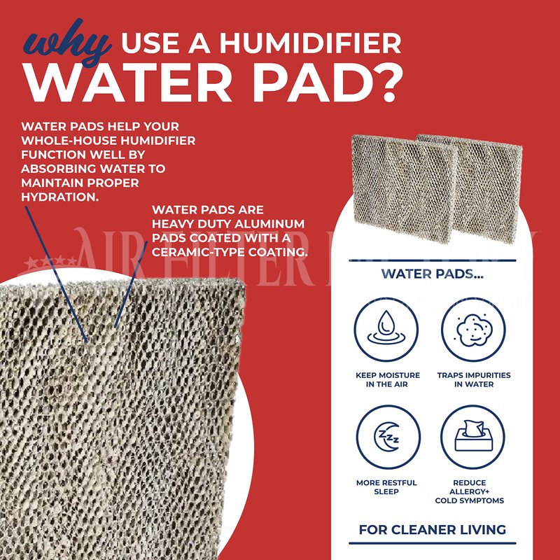 - Quality – Proudly Made In The USA Our Compatible WB2-12, WB2-12A Whole House Humidifier Water Pad Is Made From A Heavy-Duty Aluminum to Maintain And Hold The Shape Of The Panel Over Its Life. The Porous Ceramic-Type Coasting Absorbs Water To Maintain The Proper Level Of Hydration To Support The Evaporation Process.