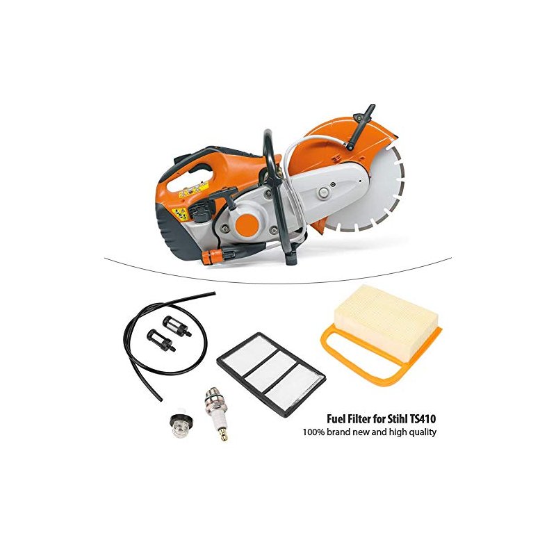 This air filter is made of high quality material, durable and easy to use. The air filter is a good replacement for the old or broken one. We recommend replacing your filters regularly for best performance. It is suitable for TS410 TS420 concrete cutoff saw.The package includes 1pcs air filters, 1pcs auxiliary filter, 1pcs 2ft fuel line, 1pcs primer bulb, 2pcs fuel filters and 1pcs spark plug, all the items fit your requirement.