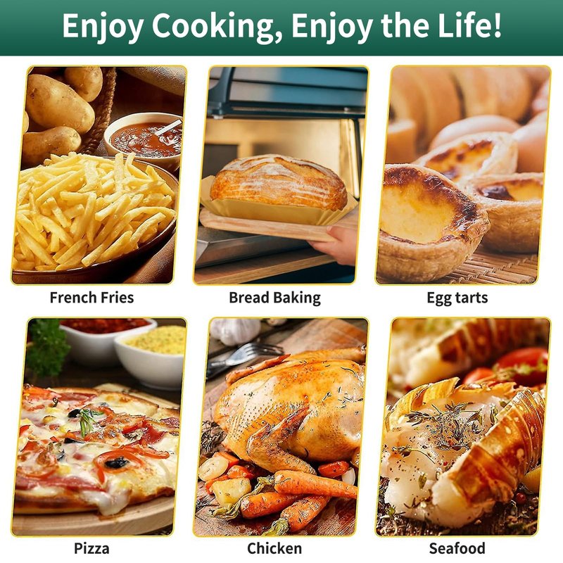 - 【Make Baking Easier】These air fryer disposable liners can effectively keep food residue away from the fryer, save yourself the trouble of cleaning it after baking, and enjoy your food in peace. What's more, it could make the air fryer last longer! Just rest the liner paper on the tray without having to clean up food grease over and over again, say goodbye to cleaning and dirt!