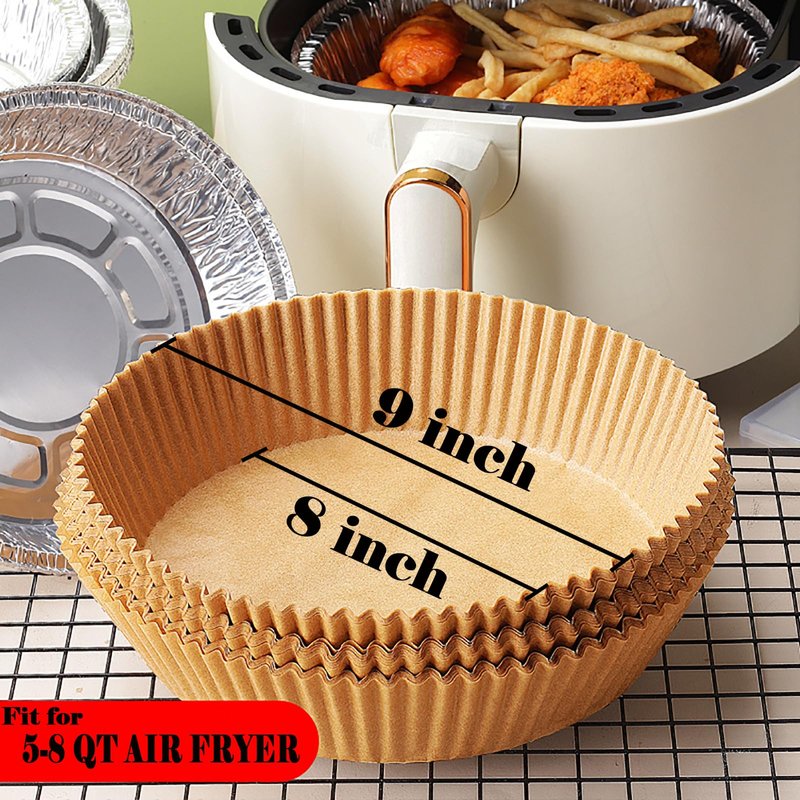 - 【200PCS 9IN For 5-8QT Air Fryer】The Round Air Fryer Paper Liners are 9in top width,8in bottom width, 1.8in height for 5 to 8 Qt,Please double check whether the size is what you need before ordering,Please feel free to contact us if the product has any problem and we will solve your problem within 24 hours.