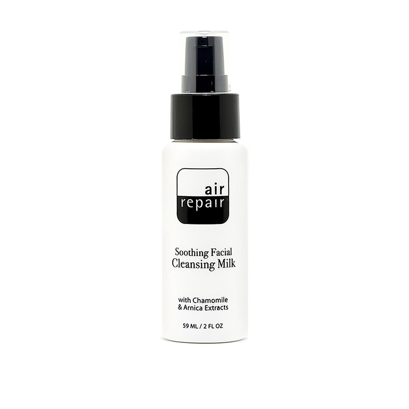 Air Repair Skincares Soothing Facial Cleansing Milk cleans and refreshes stressed skin with an exclusive blend of emollients and soothing plant extracts. Free of Parabens, Petroleum and Mineral Oil, this carry-on compliant daily cleanser gently removes dirt and make up without stripping the skin of moisture. Loaded with nourishing ingredients to calm and hydrate, this silky soft cleanser is ideal for all skin types. Plus, the travel friendly packaging makes it easy to slip into a carry on to ensure clean and radiant skin anywhere. Like all Air Repair products, it features a ground breaking combination of ingredients to help prevent chronic inflammation, (or inflam-aging), which causes dryness, dehydration, irritation and pre-mature aging. All Air Repair products are Allure Recommended. ||Includes: Cleanser, Face Cleanser ||Health Concern: Acne, Dry Skin ||Used For: Pore Cleansing, makeup removal, basic cleansing, Skin Tone Improvement ||For Use On: Eye Area, Whole Body, Face ||Product Form: cream ||Health Facts: contains green tea ||Scent: Bergamot ||Travel Size: Yes ||Assembly Details: no assembly required ||Features: Nongreasy, Moisturizes ||Capacity: Total Volume: 2.000 ||Product Warning: no warning applicable ||Made in the USA