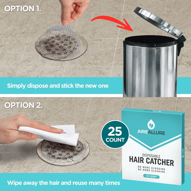 Aire Allure, 25 Pack, Disposable Shower Drain Hair Catcher Mesh Stickers