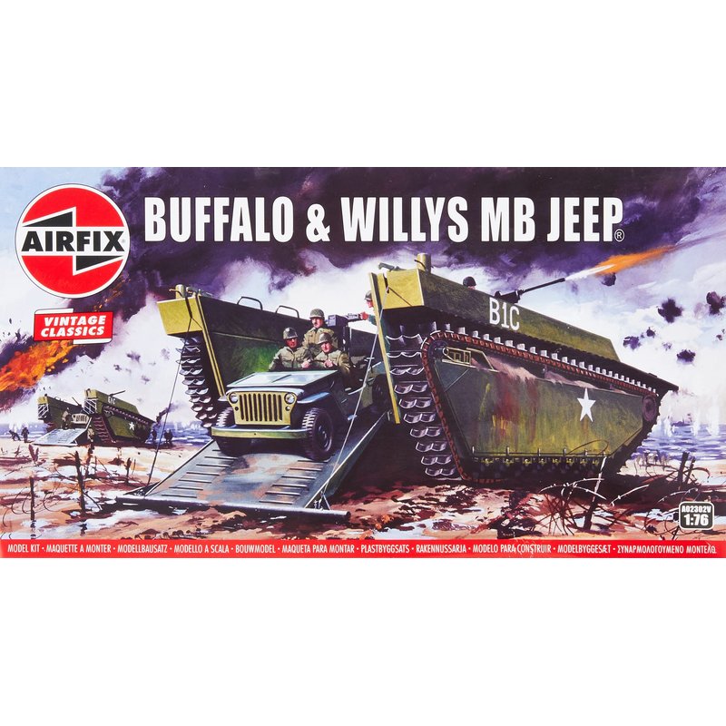 Airfix Vintage Classics Buffalo & Willys MB Jeep 1:76 WWII Military Landing Vehicle Plastic Model Kit A02302V