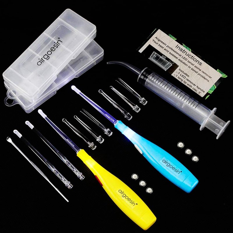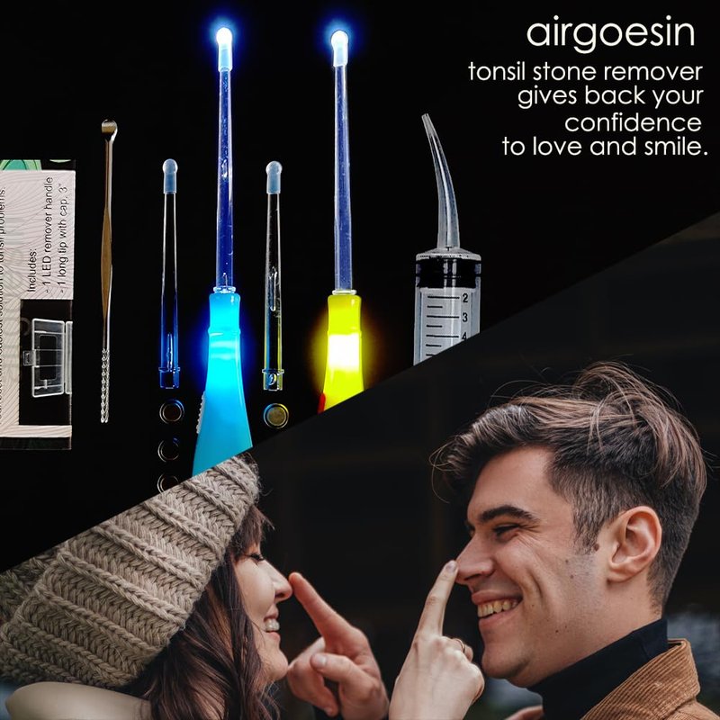 Airgoesin™ Upgraded Tonsil Stone Remover Tool, Blue & Yellow, 5 Tips, Tonsillolith Pick Case + 1 Irrigator Fresh Breath Oral Rinse