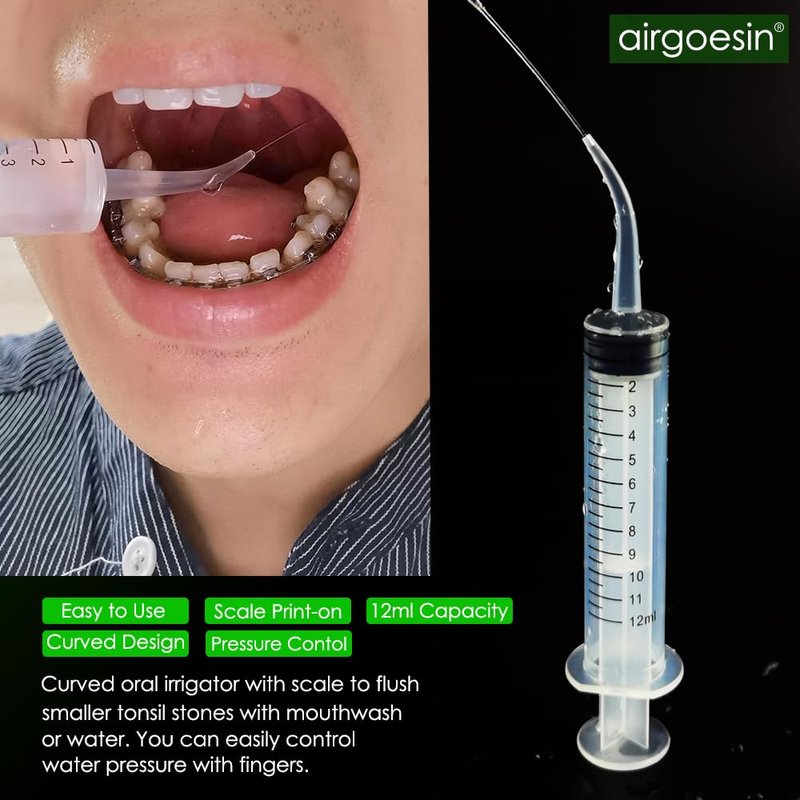 - Use the irrigation syringe to rinse those tight areas. The syringe can be filled with your favorite mouthwash, or plain water.