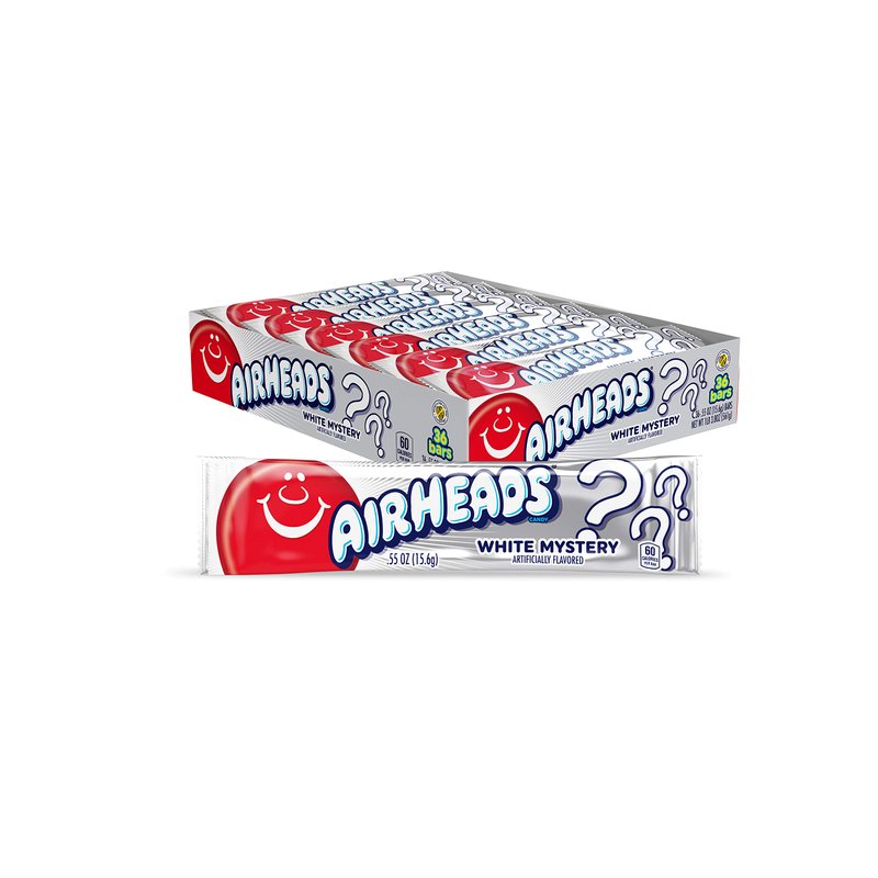 Airheads Candy, White Mystery Flavor, Individually Wrapped Full Size Bars, Taffy, Non Melting, Party, Pack of 36 Bars
