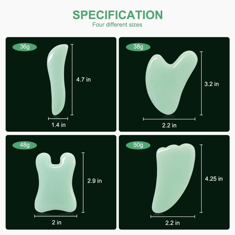 - ❤GUIDANCE BOOKLETS & FULL-BODY MASSAGE - 4 guasha boards with different shapes and sizes aiming to offer you complete massage including keep young on face,shoulders,thighs, tight calves,back belly waist etc. All double beveled edges are smooth and slightly rounded ,so never scratch and hurt your skin even when doing trigger point. INSTRUCTIONS BOOK can help you use them better especially for beginner.