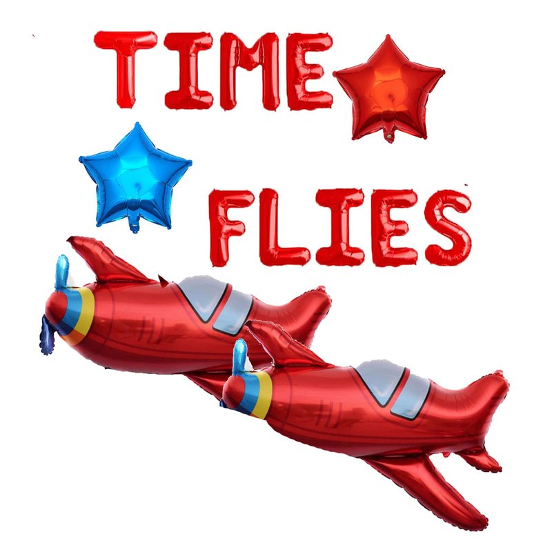Airplane Birthday Party Decorations Time Flies Balloons Airplane Foil Balloons for Baby Shower Boys Girls Kids 1st 2nd 3rd Themed Party Decorations Supplies