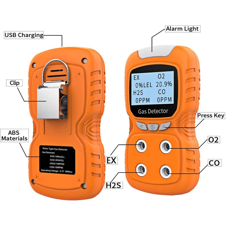 - 【LCD Display】: High density big digital LCD screen display real time gas concentation value; compact size and unique clip design, it is convenient for user to carry around, Chinese and English operation interface.