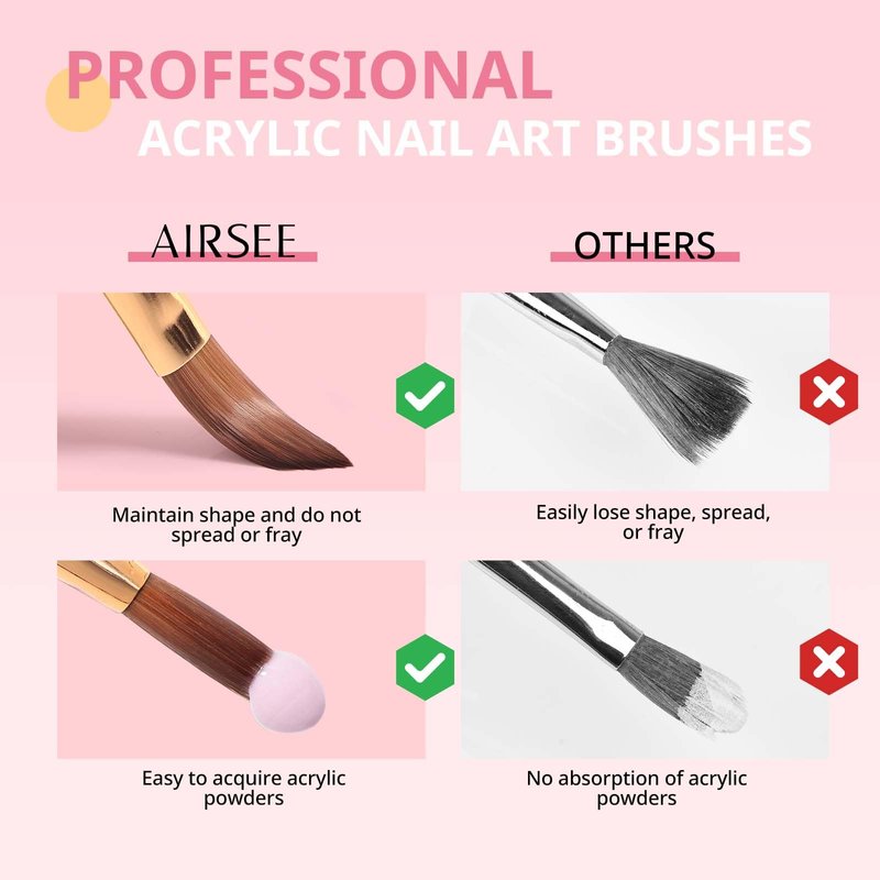 - Professional Acrylic Nail Brush Set: Designed for both beginners and professional nail artists; It's perfect for acrylic nail art and compatible with acrylic powder, offering you a professional salon-like experience at home